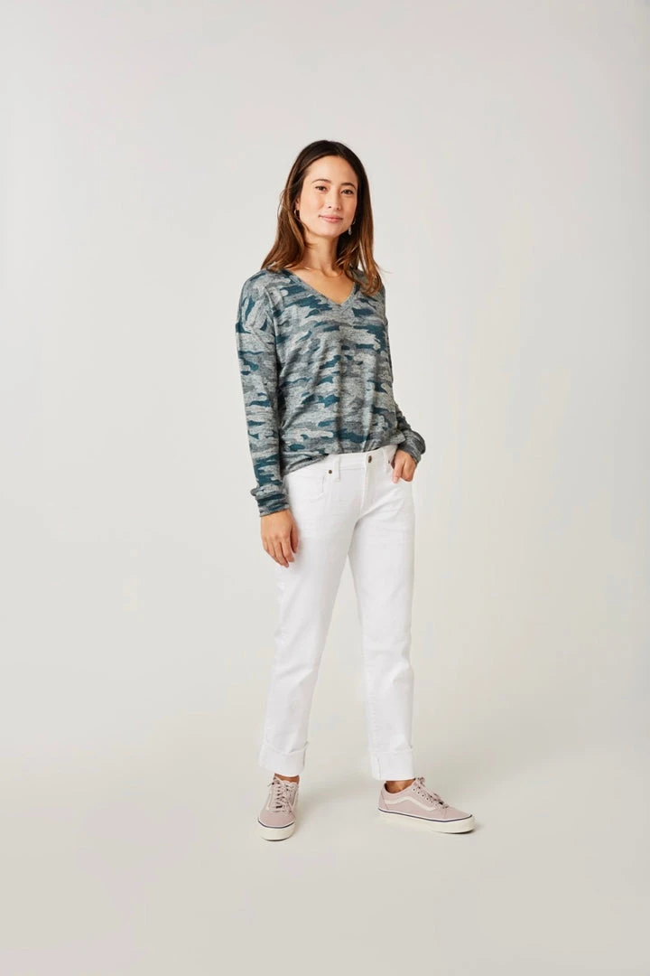 The Carson Jean is a true baggy Boyfriend Jean. So loose and baggy you might need to synch the waist with a belt. Relaxed in the hips and thighs it’s the perfect stretch denim jean that effortlessly takes you from weekend to weekday. If you don’t want them too baggy you may want to size down. The denim is amazingly cozy.