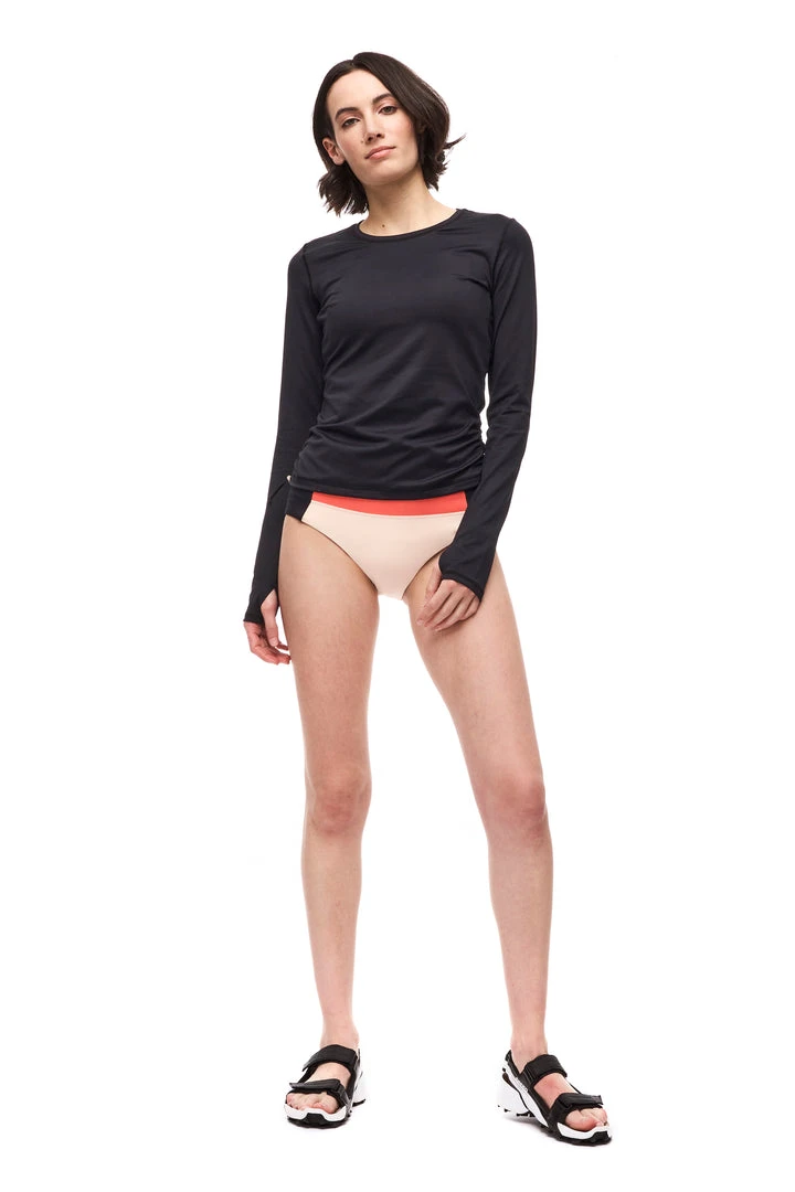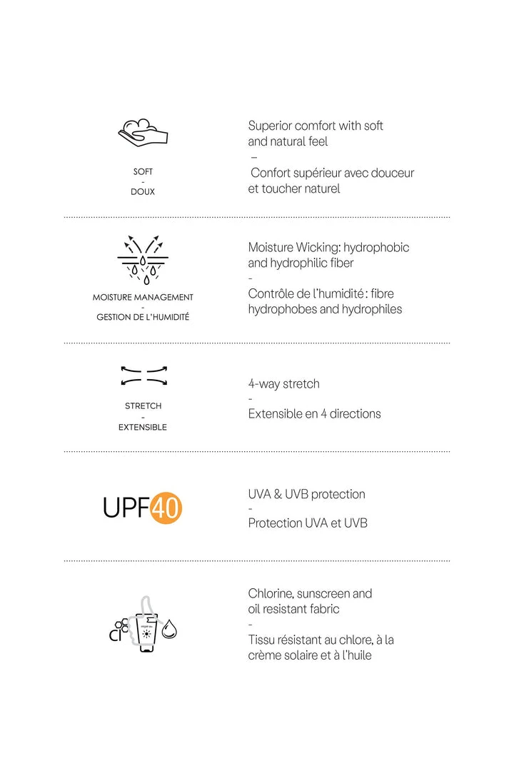 The RYNNA rash guard is made of a very soft fabric that offers high performance to support you in your activities, from trail to river. It offers high power stretch with excellent recovery and has a strong resistance to pilling. In addition to keeping you comfortable in the water, the RYNNA rash guard can be adjusted on the sides with sliders for a look that suits you best. The fabric has a high resistance to chlorine, sunscreens and oils.