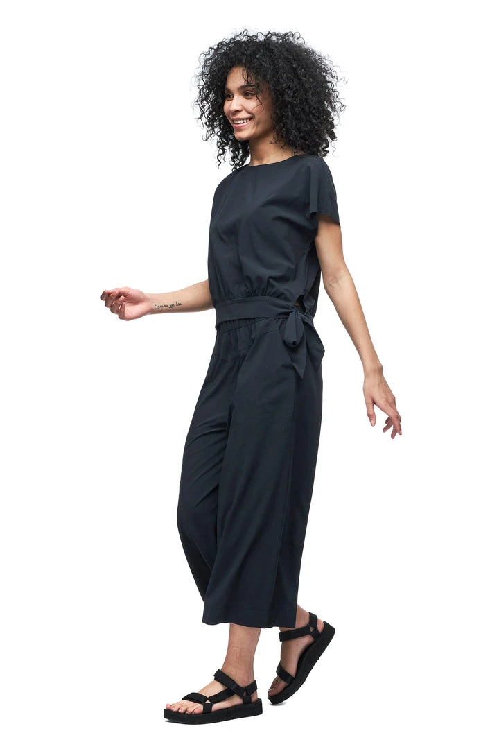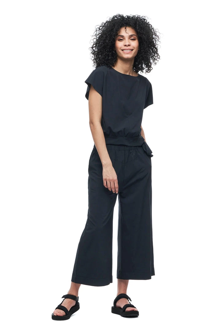 The EPESI regular waist wide leg pants is made of light woven fabric that offers comfort, lightness, softness and stretchability. The EPESI pants have an elastic waistband and back pocket with zipper closure, ideal for an active journey. The fabric dries quickly, has moisture wicking properties and has a UPF rating 30+. These features make these pants versatile, great for travel and various outdoor activities.