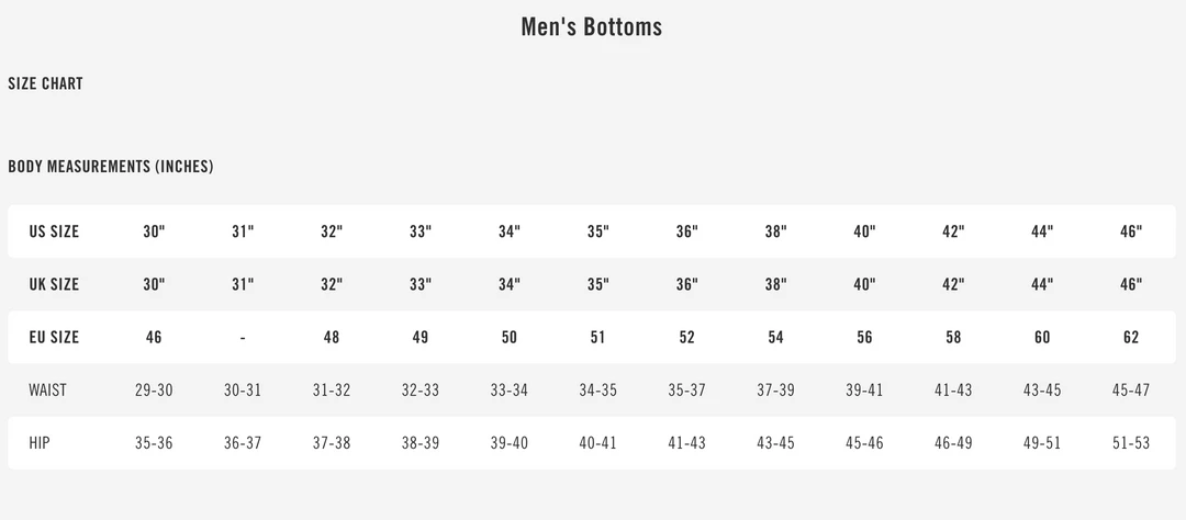 - Standard fit with gusseted crotch for mobility and freedom