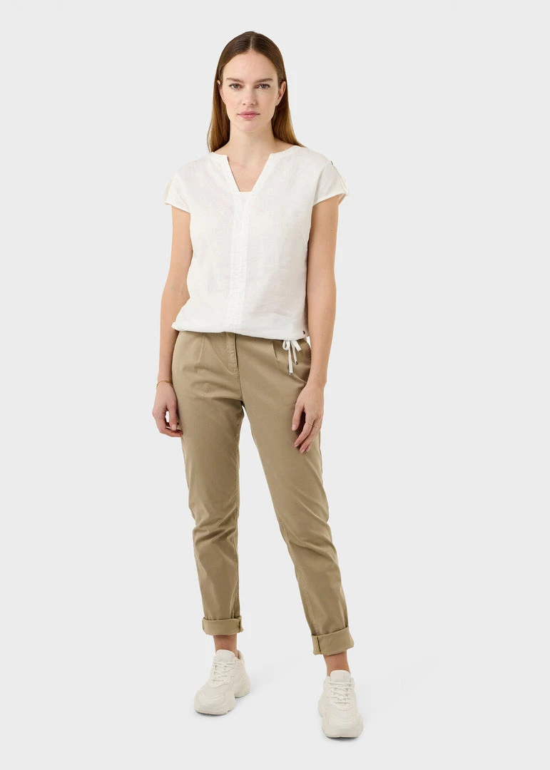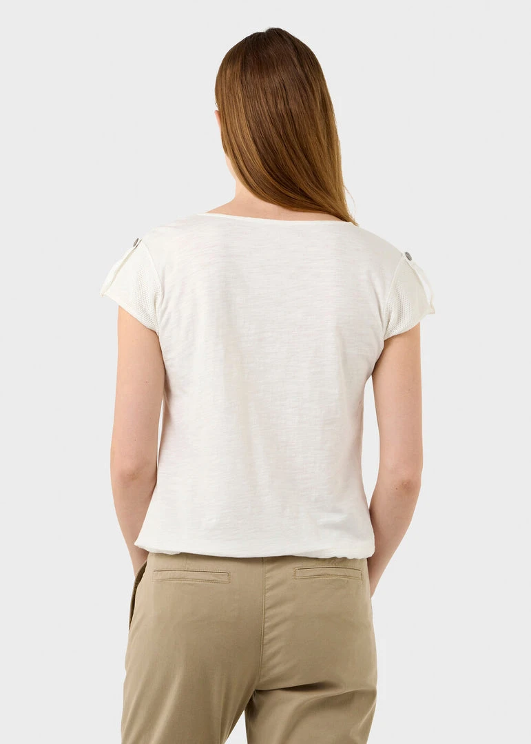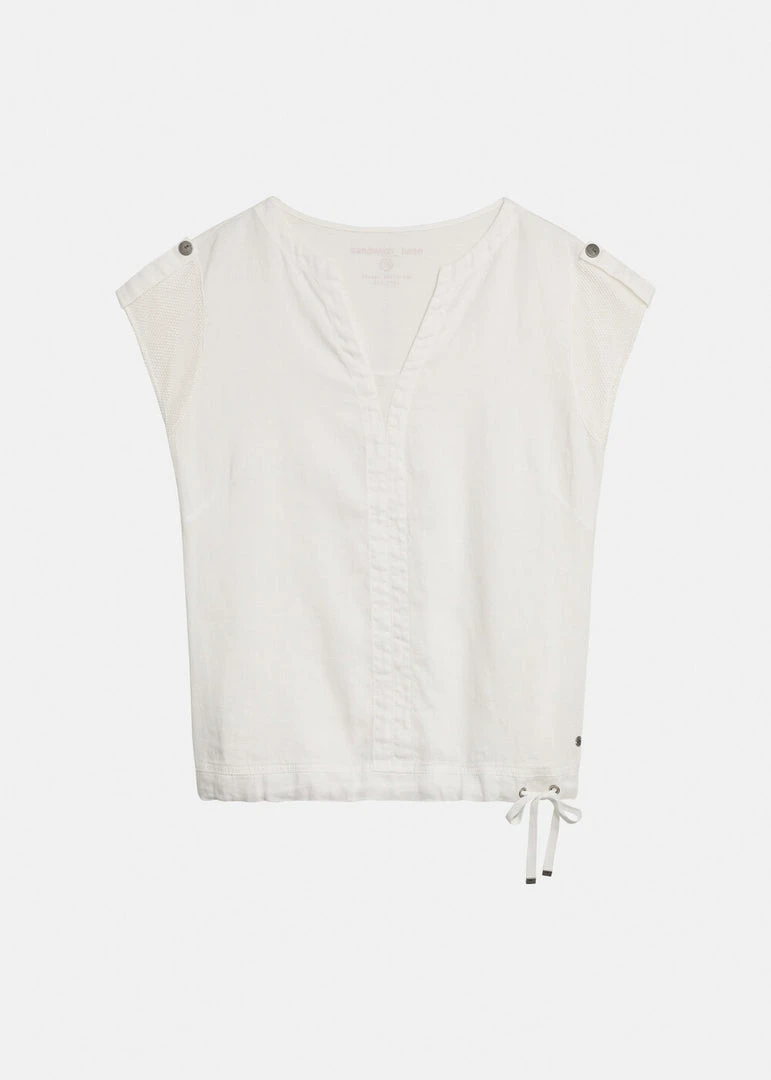This airy linen blouse is made from 100% linen and perfect for hot summer days. The blouse features a drawstring in the hem and a mesh detail with button on the shoulders.