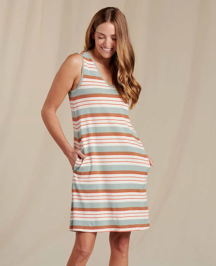 Low on fuss but high on fun, this tank dress will get you where you need to go with swagger to spare. Bold retro stripes meet the sustainable dream team of hemp and organic cotton, and hand pockets give you space to stash essentials. Add a ball cap, some sneaks and congratulations—the perfect outfit has been born.