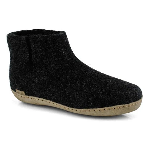 The MODEL G charcoal boot slippers from GLERUPS is a bedroom slippers that’s out of the bedroom and into, well, just about everywhere! 100% natural and breathable Glerups fine wool makes feet feel dry and warm. All-season comfort. No-itch wool. Slip-resistant leather outsole. Packable, giftable, loveable. The Glerups slipper is natural comfort since 1993.