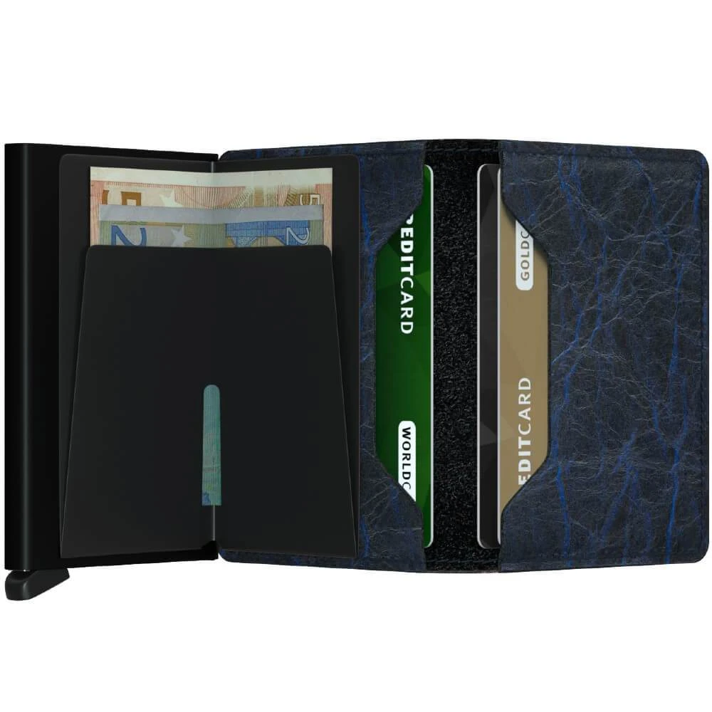 The patented mechanism allows you to slide out your cards with one simple motion, ready for immediate use. The aluminium protects from bending, breaking and unwanted wireless communication.