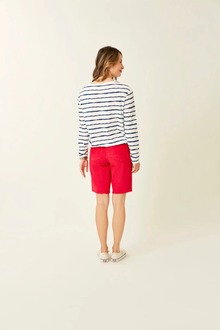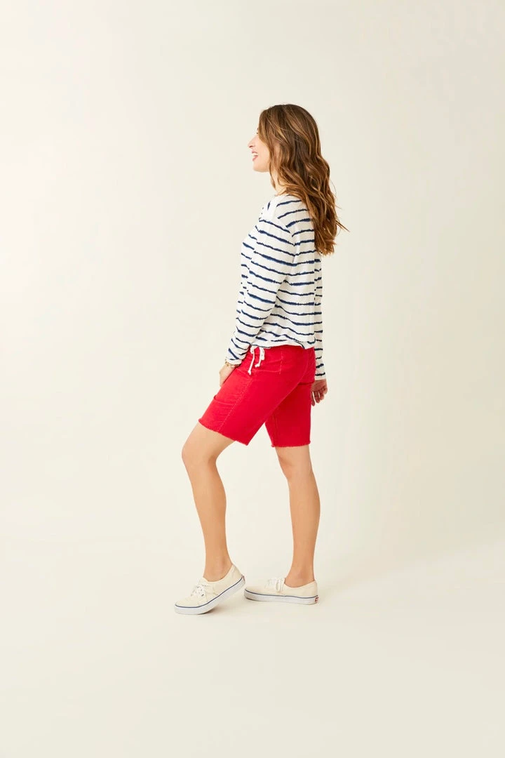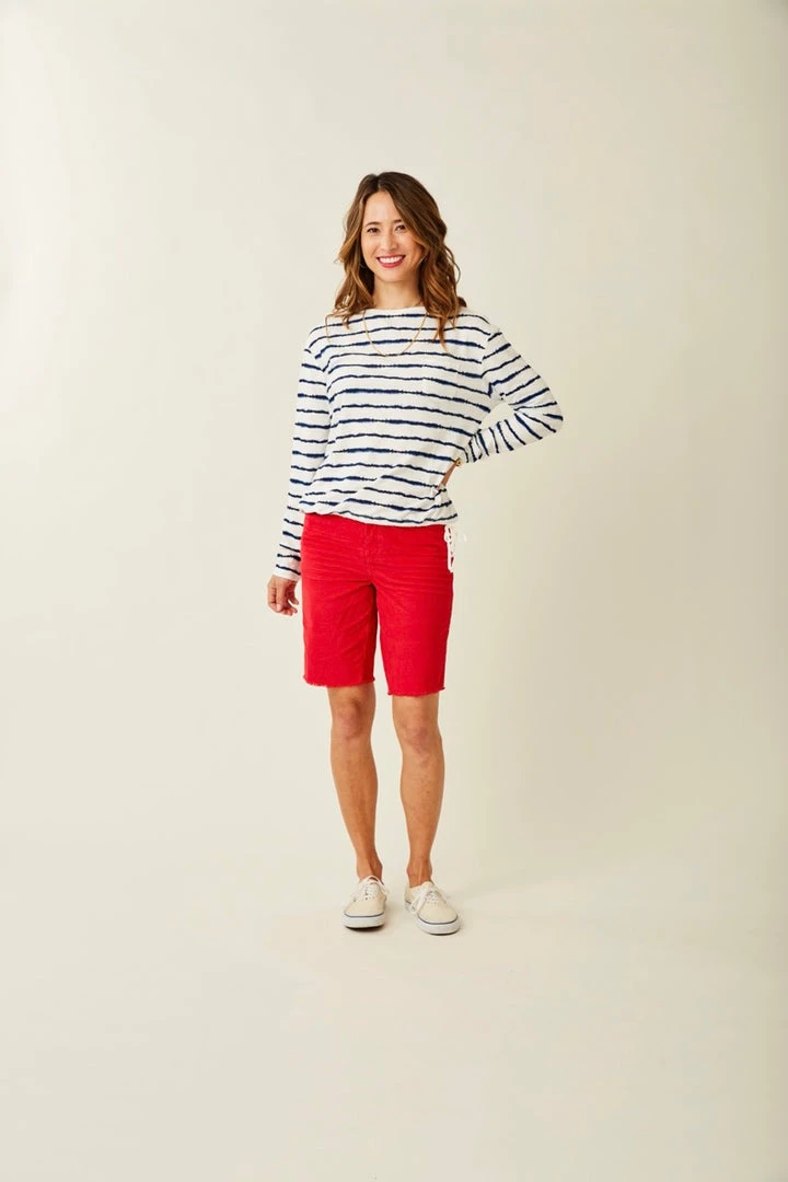 A relaxed fit long sleeve with a bateau neckline and drawstring tie waist, the Lorena Top is cute and carefree, just like you. Paired with Organic Cotton, this fabric includes cellulose fibers from Lenzing MODAL®, made out of beech wood, a replenishable raw material that’s CO2-neutral through its production process. A more sustainable choice while reducing toxins in the environment