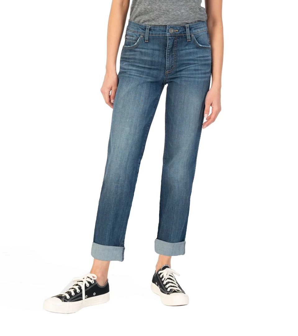 - Size & Fit: Inseam After Roll Up: 27 1/4″, Inseam Before Roll Up: 29 1/4″, Leg Opening: 13 1/2″, Rise: 10 1/4, Silhouette: Boyfriend